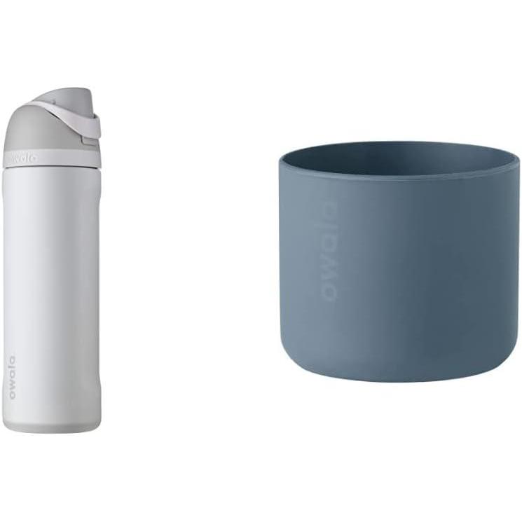 Owala FreeSip Insulated Stainless Steel Water Bottle, 24-Ounce, Shy Marshmallow & Silicone Water Bottle Boot, Anti-Slip Protective Sleeve Cover for 24-oz FreeSip, Twist, Blue(Shy Marshmallow)