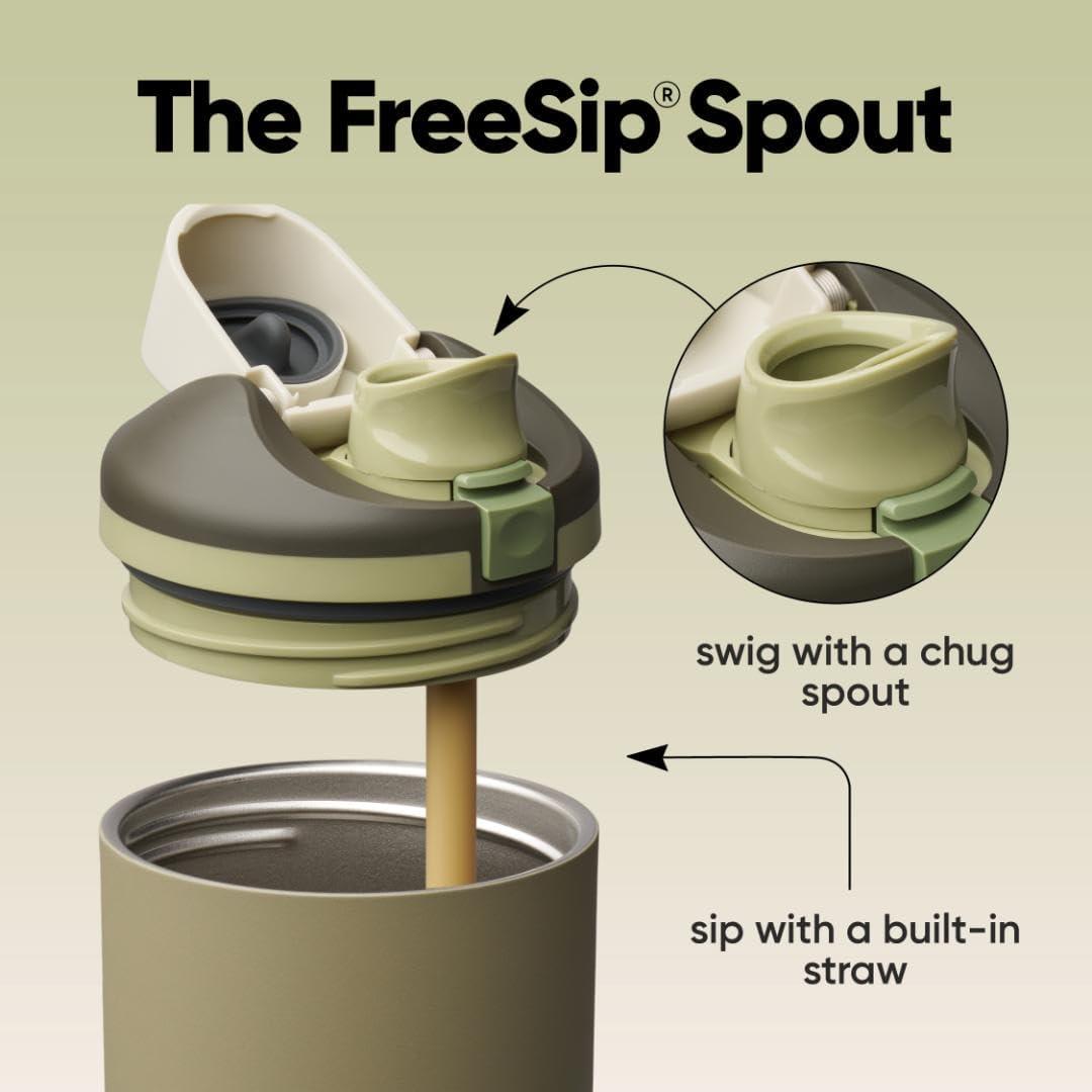 Owala FreeSip Tumbler Insulated Stainless Steel Water Bottle with Built-in Straw and Side Handle, For Travel, Work, School, and Sports, 40oz, BPA Free, Leak Proof, Foggy Tide(Off Road)
