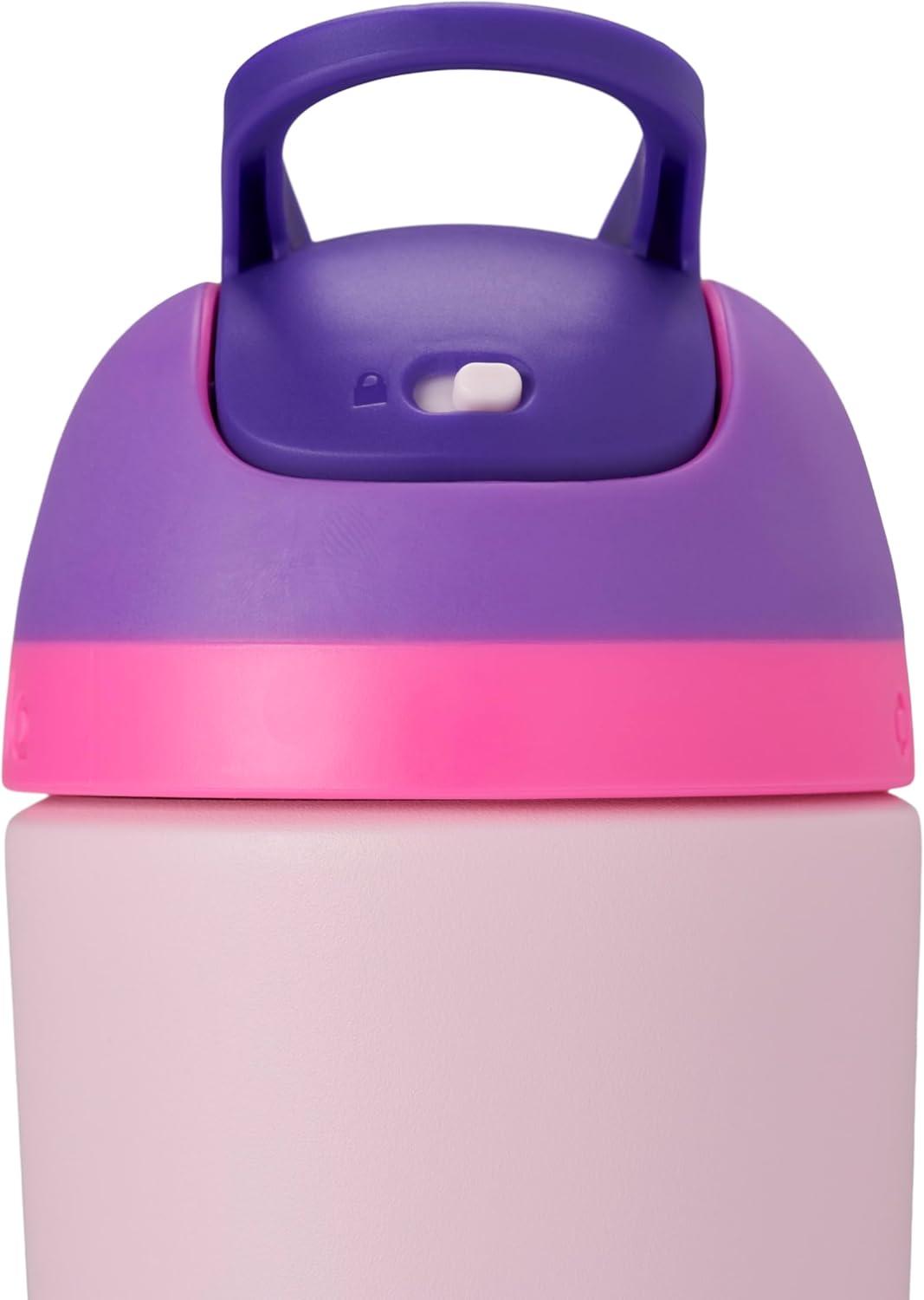 14-ounce insulated stainless-steel flip-top water bottle, featuring straw, locking lid, and simple one-handed operation for kids and toddlers at school or on an adventure