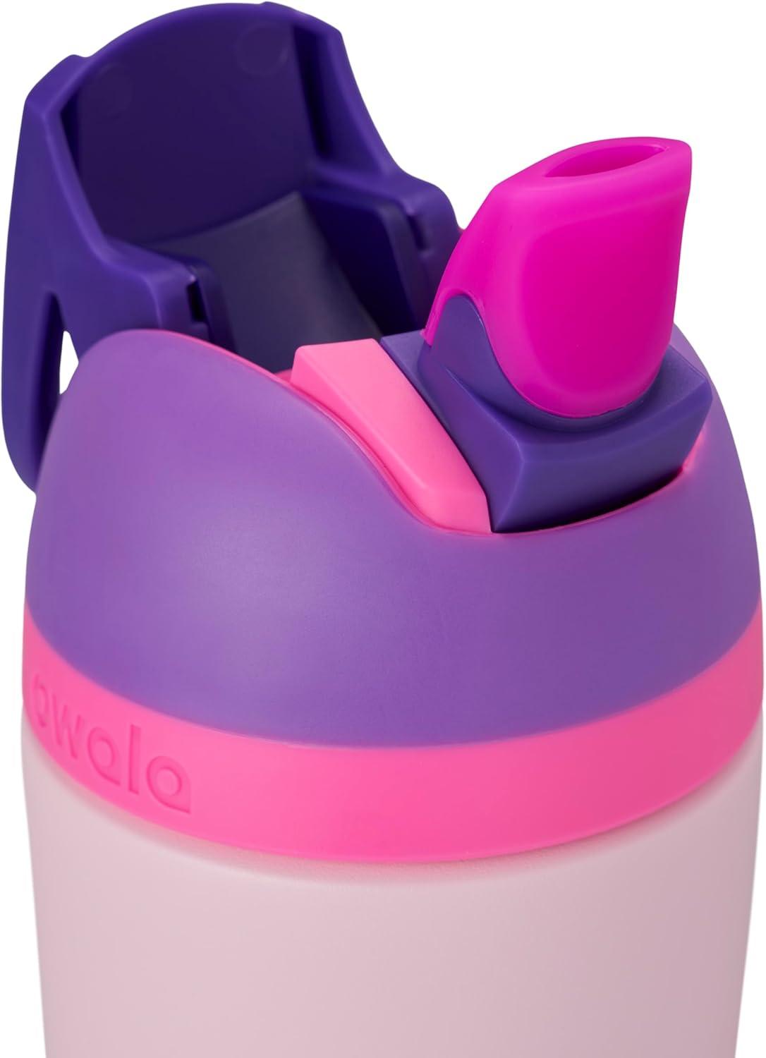 Owala Kids Flip Insulated Stainless-Steel Water Bottle with Straw and Locking Lid, 14-Ounce, Purple/Pink (Bunny Business)