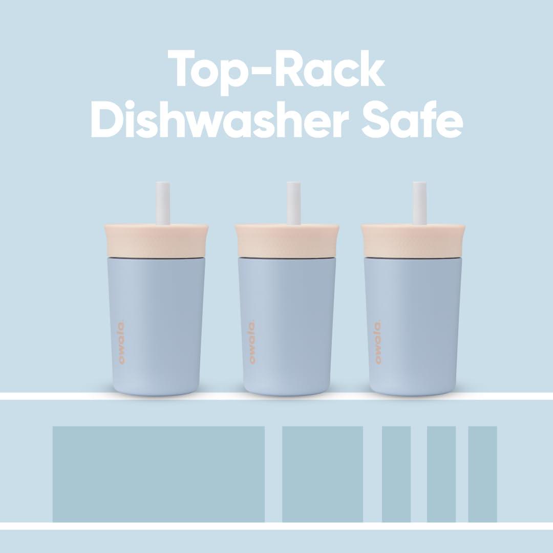Owala Kids Insulation Stainless Steel Tumbler with Spill Resistant Flexible Straw, Easy to Clean, Kids Water Bottle, Great for Travel, Dishwasher Safe, 12 Oz, Peach and Yellow (Picnic)(Tan and Blue)