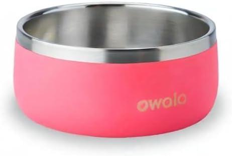 Owala Pet Bowl – Durable Stainless Steel, Food and Water Bowl for Dogs, Cats, and All Pets, Non-Slip Base, 24oz, White (Shy Marshmallow)(Hyper Flamingo)