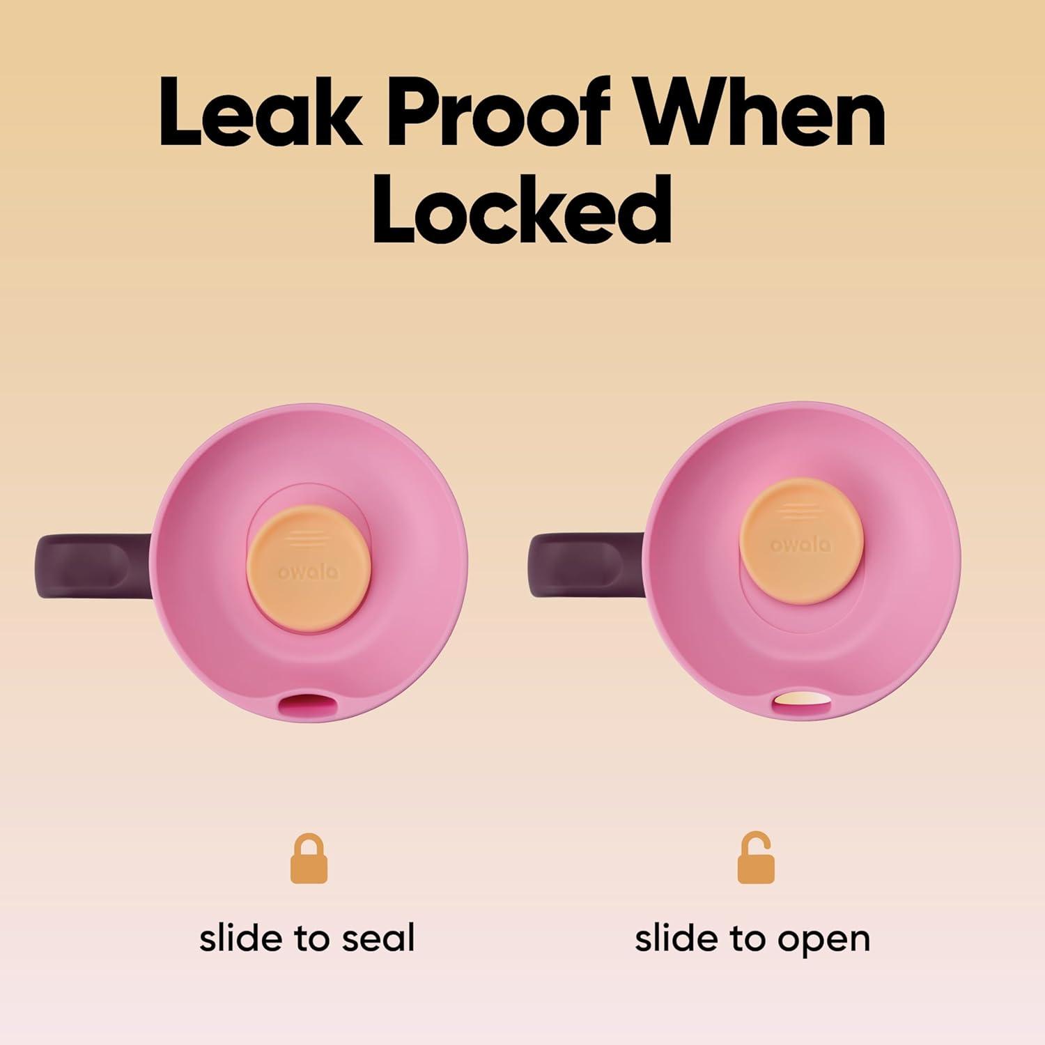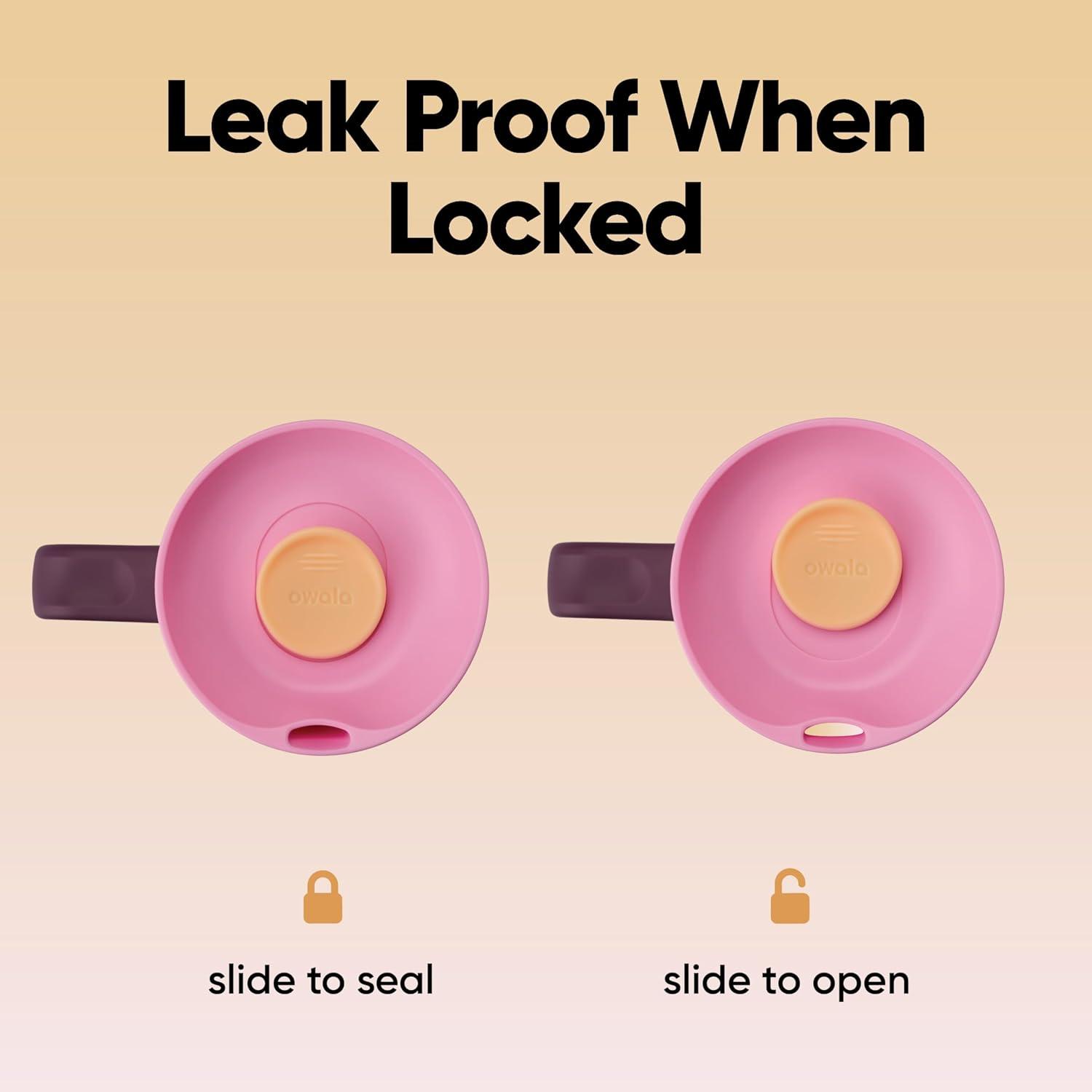 Owala SmoothSip Slider Stainless Steel Insulated Travel Mug, 100% Leak Proof, For Hot and Cold Drinks, Travel Friendly with Sliding Lock Lid, 12oz, BPA Free, Leak Proof, Pink/Tan (Daybreak)(Daybreak)