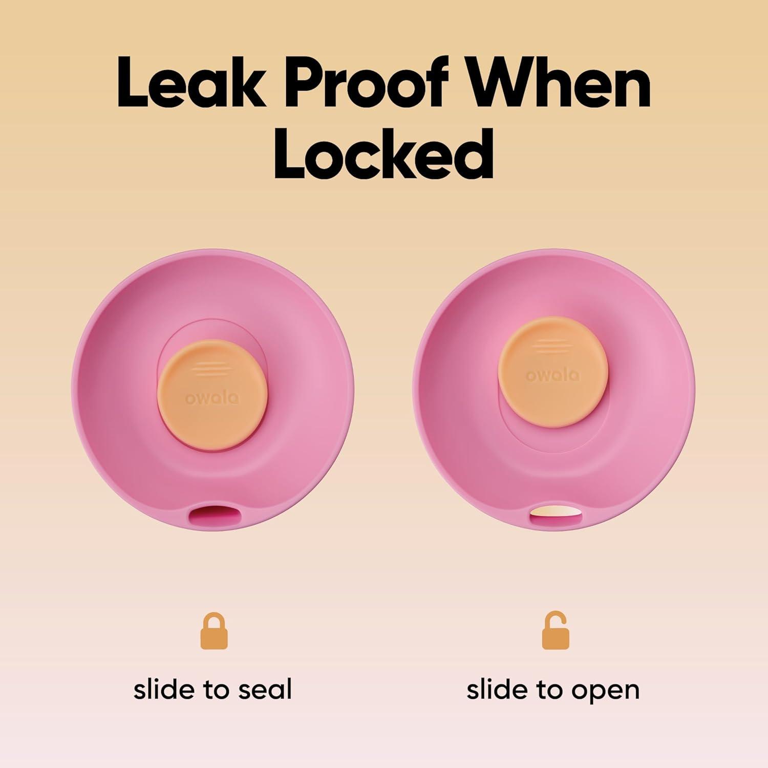 Owala SmoothSip Slider Stainless Steel Insulated Travel Mug, 100% Leak Proof, For Hot and Cold Drinks, Travel Friendly with Sliding Lock Lid, 12oz, BPA Free, Leak Proof, Pink/Tan (Daybreak)(In Bloom)