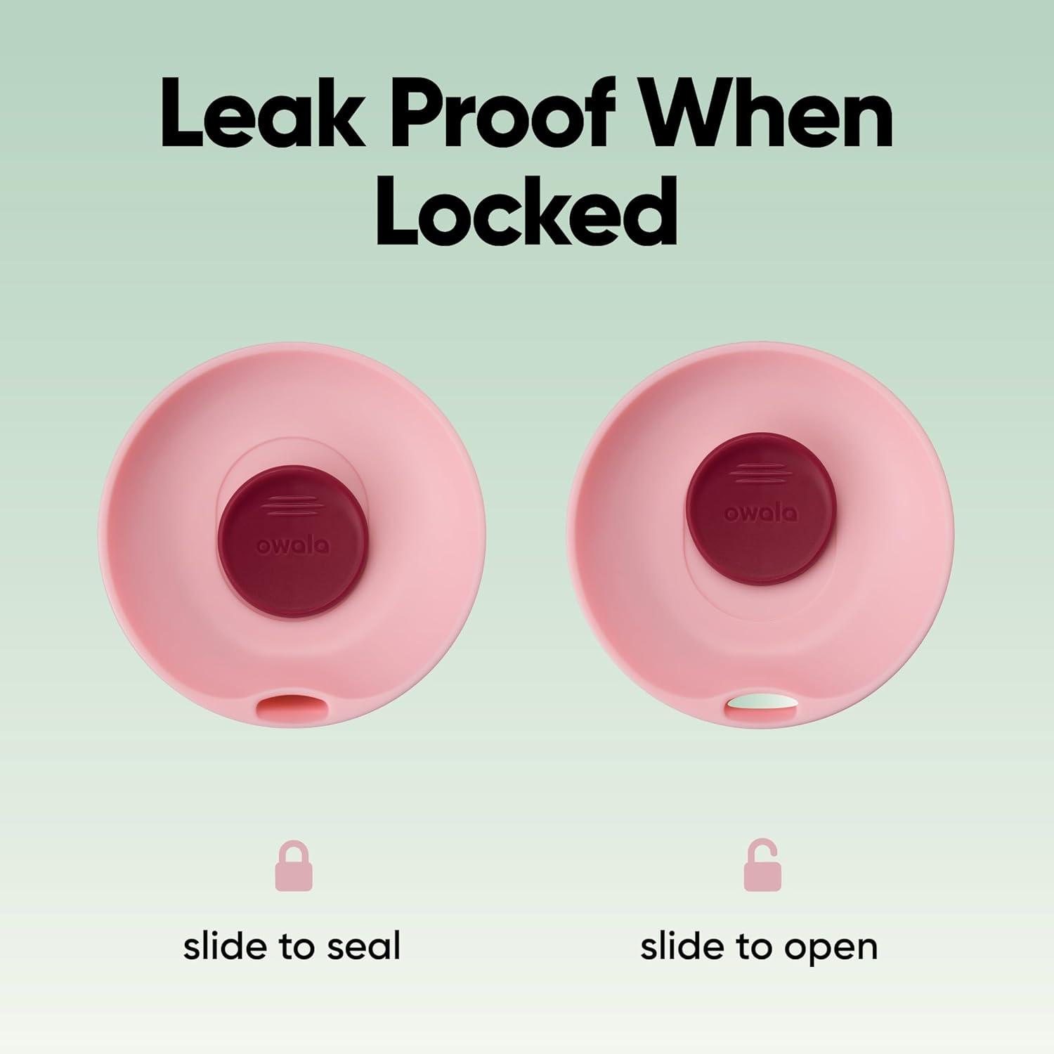 Owala SmoothSip Slider Stainless Steel Insulated Travel Mug, 100% Leak Proof, For Hot and Cold Drinks, Travel Friendly with Sliding Lock Lid, 12oz, BPA Free, Leak Proof, Pink/Tan (Daybreak)(Strawberry Fields)