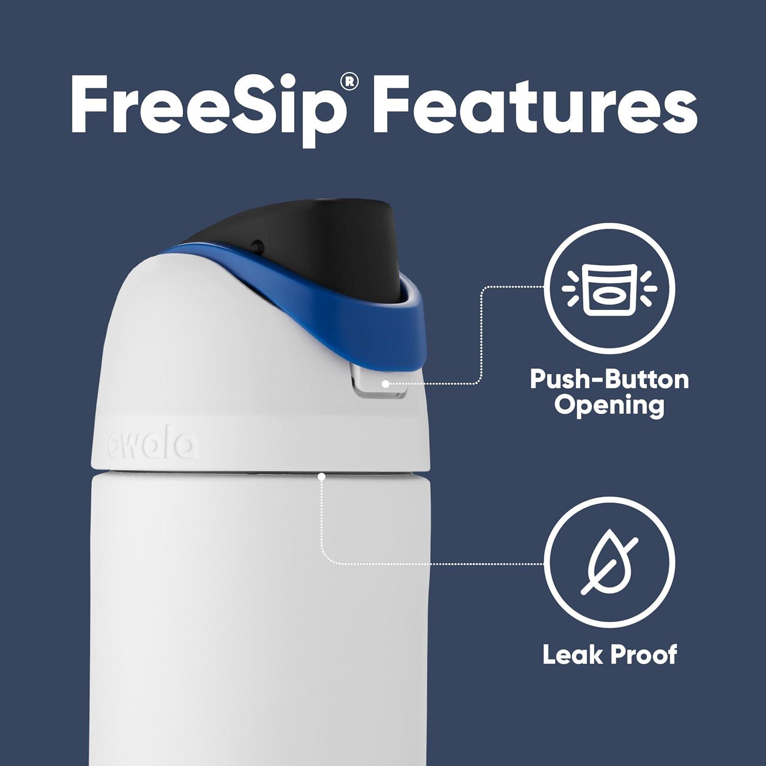The Owala FreeSip Insulated Stainless-Steel Water Bottle with Locking Push-Button Lid easily tackles every thirst. With a built-in, easy-clean straw and a wide-mouth opening, the FreeSip reusable bottle is designed for drinking two different ways: sipping upright through the straw or tilting back to swig from the wide-mouth spout opening. Add in a push-to-open lid and Star Wars themes, and staying hydrated has never been simpler—or more fun. Additional features include double-wall insulated stainless steel that keeps drinks cold up to 24 hours, a carry loop that doubles as a lock, a cup holder-friendly base, and a wide opening for easy cleaning and adding ice. The Owala FreeSip Insulated Stainless-Steel Water Bottle with Locking Push-Button Lid is available in five colors. Lid is dishwasher safe; hand wash cup. Not for use with hot liquids. Manufacturer’s limited lifetime warranty.