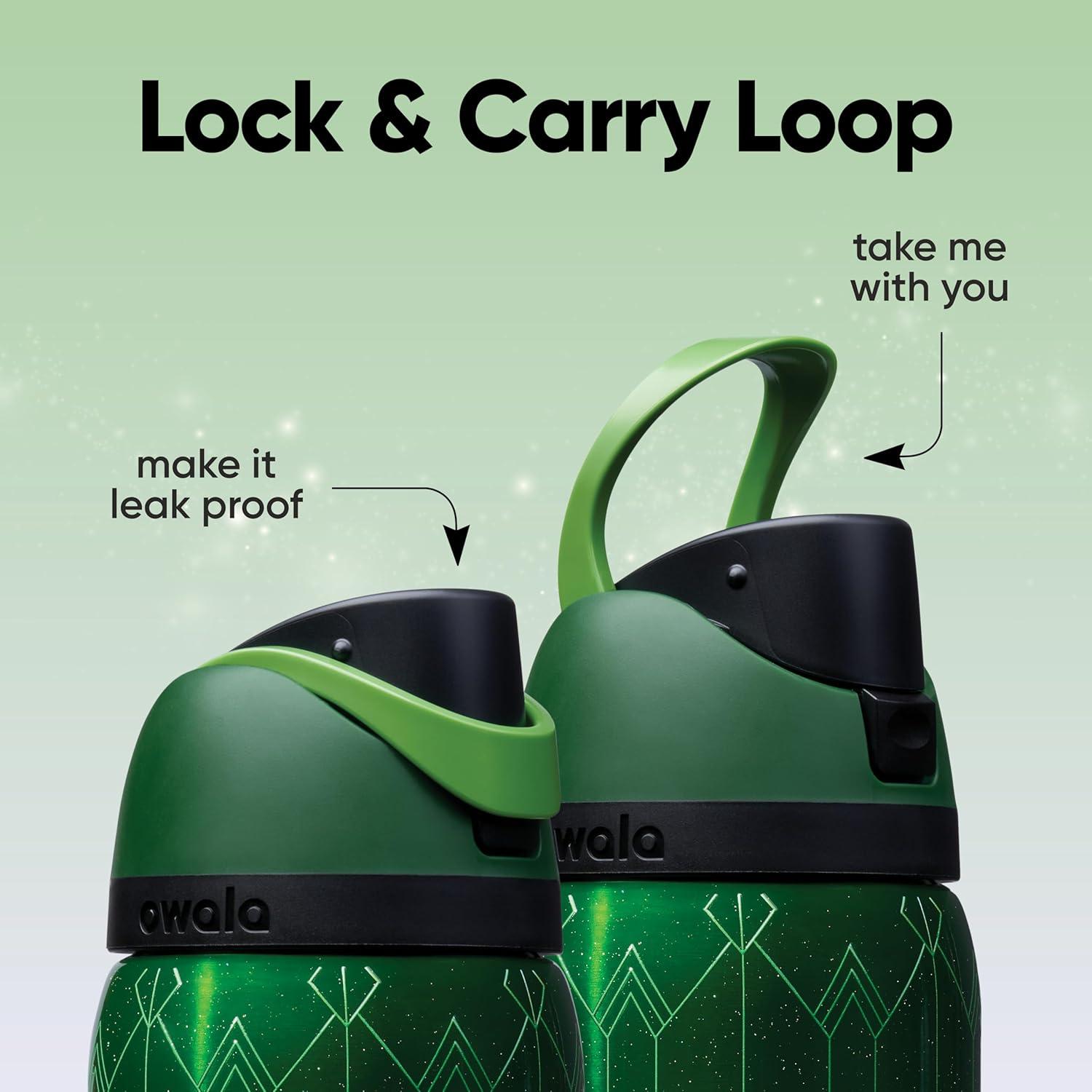 The Owala FreeSip Insulated Stainless-Steel Water Bottle with Locking Push-Button Lid easily tackles every thirst. With a built-in, easy-clean straw and a wide-mouth opening, the FreeSip reusable bottle is designed for drinking two different ways: sipping upright through the straw or tilting back to swig from the wide-mouth spout opening. Add in a push-to-open lid and playful colors, and staying hydrated has never been simpler—or more fun. Additional features include double-wall insulated stainless steel that keeps drinks cold up to 24 hours, a carry loop that doubles as a lock, and a wide opening for easy cleaning and adding ice. The Owala FreeSip Insulated Stainless-Steel Water Bottle with Locking Push-Button Lid is available in three sizes: 24-Ounce, 32-Ounce, and 40-Ounce. Lid is dishwasher safe; hand wash cup. Not for use with hot liquids. Manufacturer’s limited lifetime warranty.